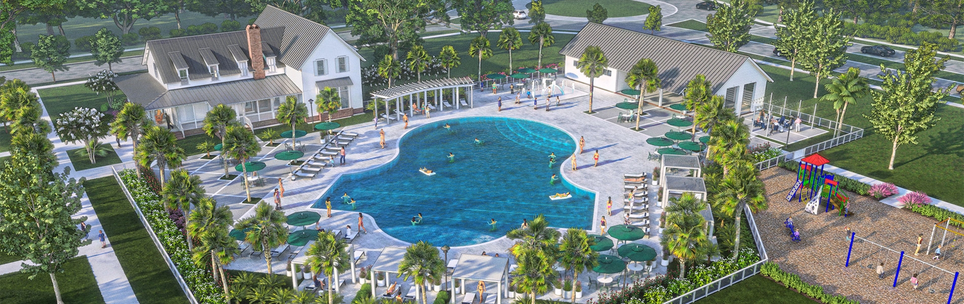 The heart of a neighborhood is its amenities area. After all, it brings neighbors together to socialize, relax and have fun. Our SayeBrook Park is on nine acres and features a 4,000-square-foot Meeting House, covered pool pavilion, resort-style pool, fire pit, lighted pickleball courts, kids' playground, multi-purpose open-air community shed, and lush open lawn perfect for hosting special community events.
